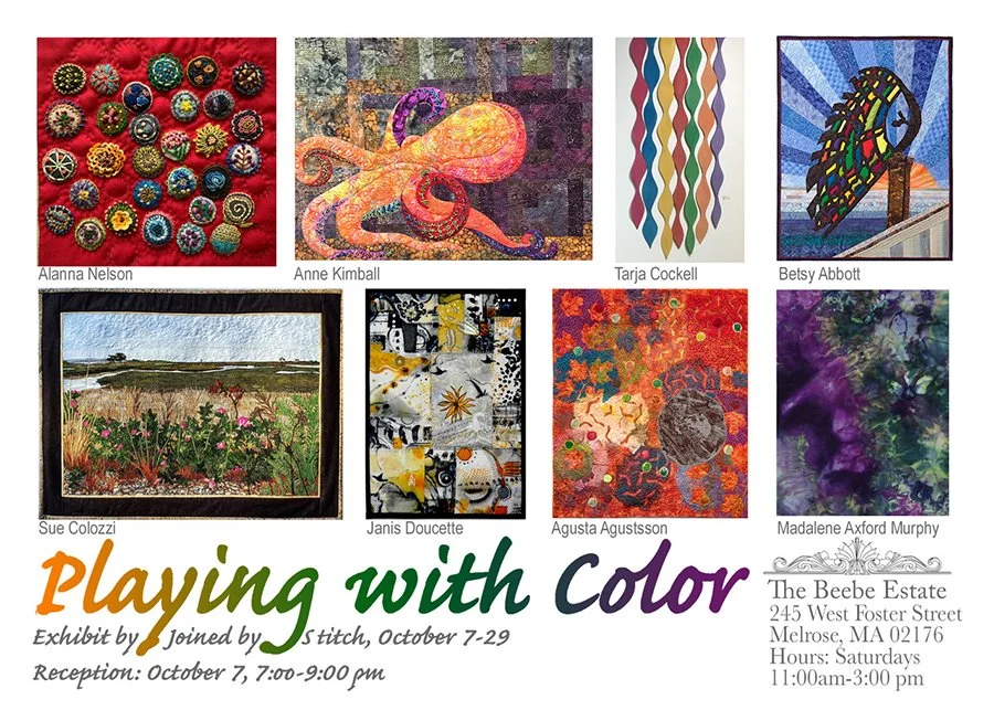 Opening Reception - Playing with Color Friday, October 7, 2022 7:00 PM 9:00 PM The Beebe Estate 235 West Foster Street Melrose, MA, 02176 United States (map) Google Calendar ICS
